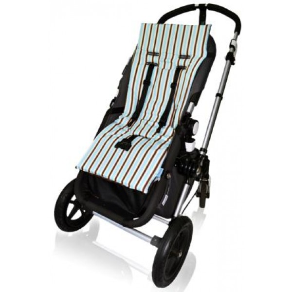 Classy and fun! Stunning Blue & Brown fun stripe liner! Dress up and protect your stroller from spills, crumbs and other unmentionables! Whether your precious cargo rides in a new Bugaboo, Maclaren, Baby Jogger, Uppa Baby or any other stroller, give her a clean and comfortable environment to ride in. Not only are Tivoli Couture stroller seat liners the choice for new strollers, but they are also an ideal pick for hand-me down or gender neutral strollers.