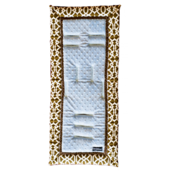 NEW STYLE!!! This modern brown and white trellis is teamed up with the oh-so-soft blue minky fabric, so your baby will be surrounded by the softest and finest fabrics. Reverse side features trellis design with two bows. This unique stroller liner is padded so your little one can be comfy and ride around in style. Completely machine washable, and compatible with all the major stroller brands (Bugaboo, Maclaren, Peg Perego, Orbit & Graco), Moms will also appreciate not having to take apart and wash their stroller covers, cause we know what a total hassle that is!